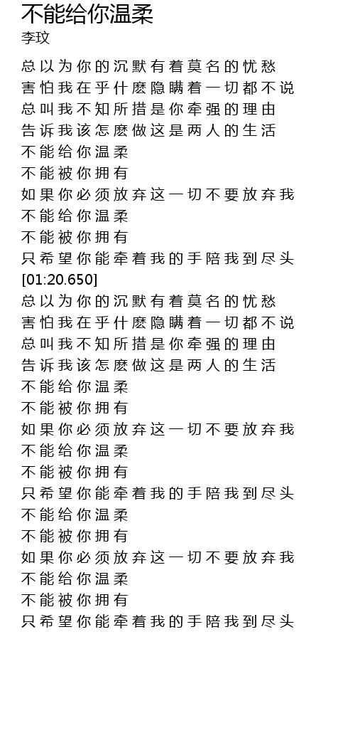 | [01:04.110] | 不 能 给 你 温 柔 |
