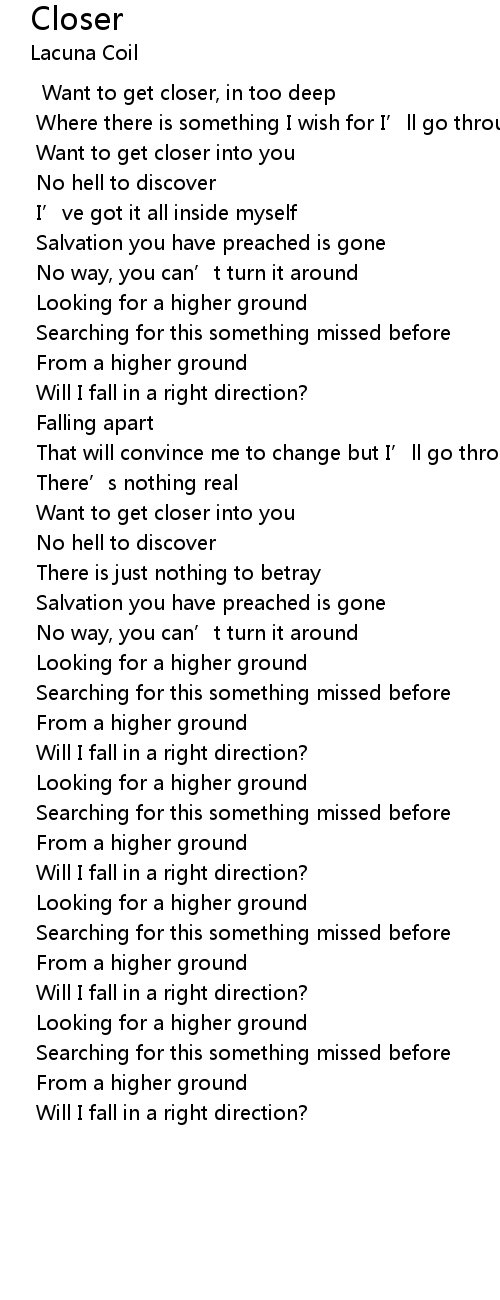 | Want to get closer into you | |