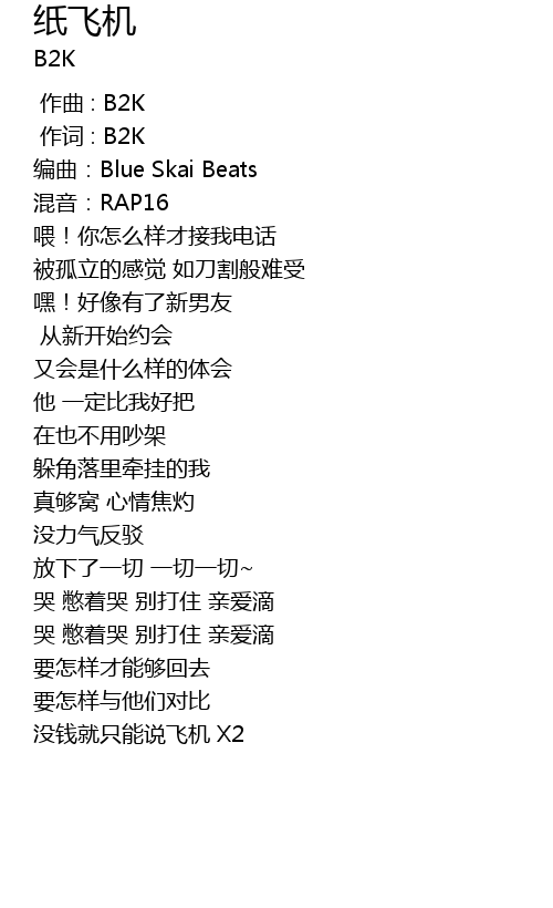 | [01:41.490] | mei qian jiu zhi neng shuo fei ji X2 |
