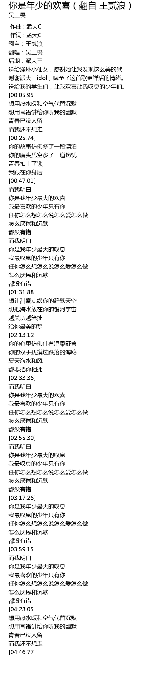 | [00:00.00] | 翻唱:吴三畏 |