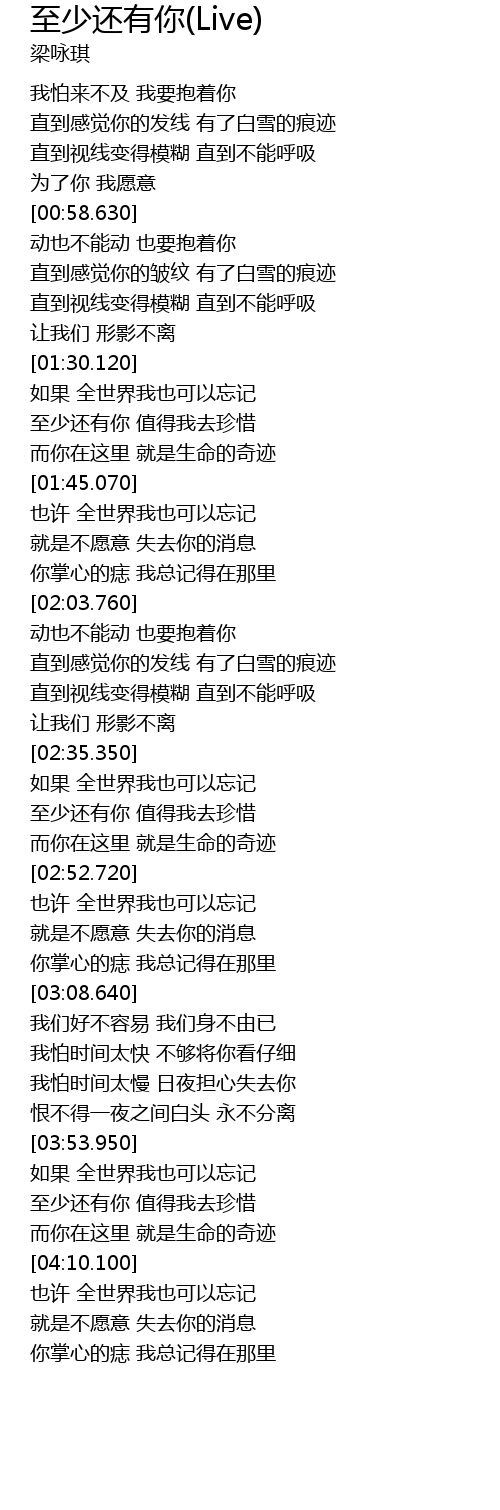 | [04:00.870] | 至少还有你 值得我去珍惜 |