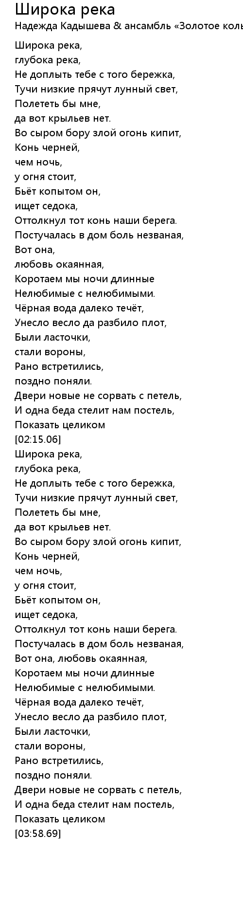 глубока река, |