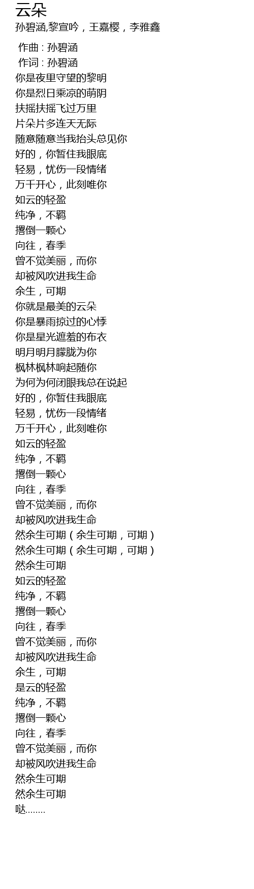 | [00:00.000] | 作曲 : 孙碧涵 |