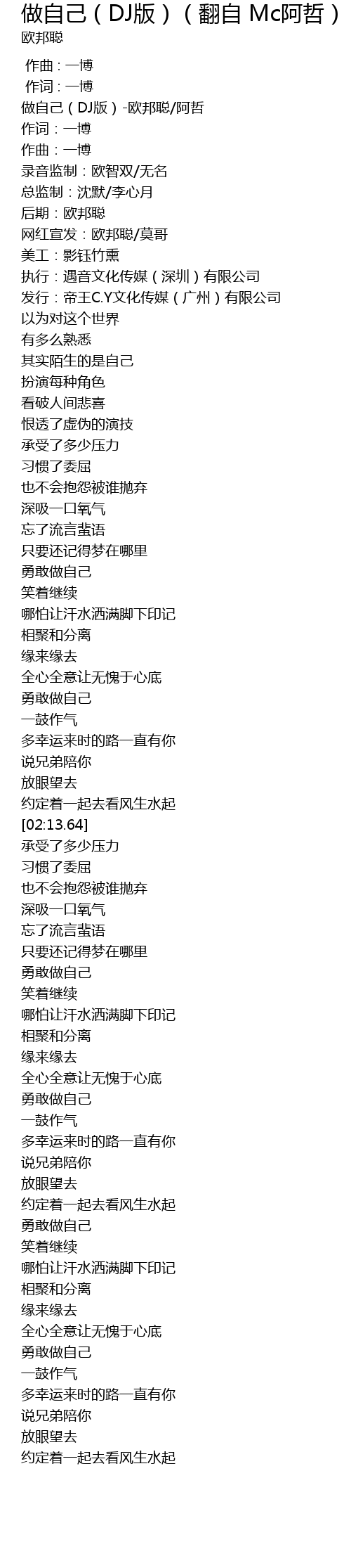 | [00:01.97] | 做自己(DJ版)-欧邦聪/阿哲 |