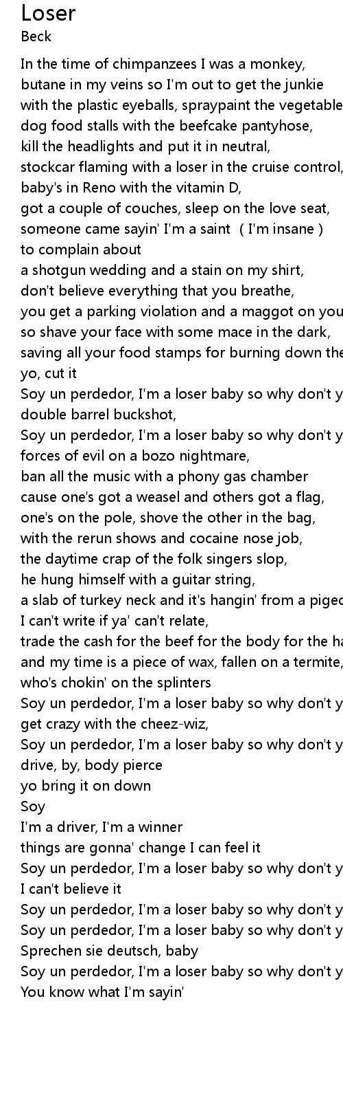 | [02:59.0] | Soy un perdedor, I' m a loser baby so why don' t you kill me |