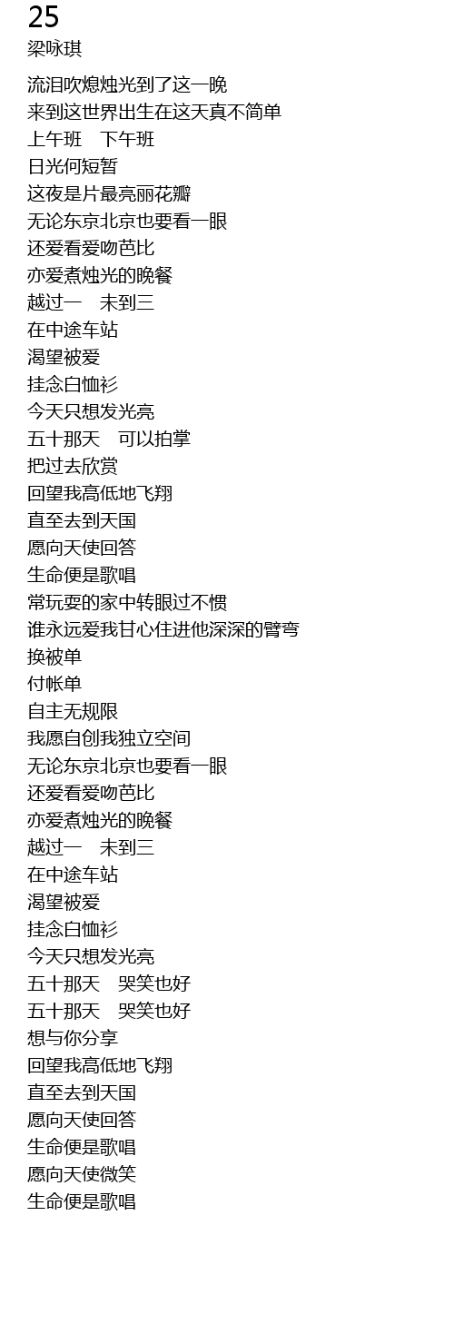 | [01:19.719] | zhí zhì qù dào tiān guó |