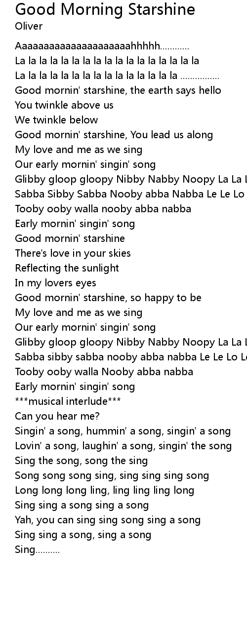 Good mornin' starshine, You lead us along |