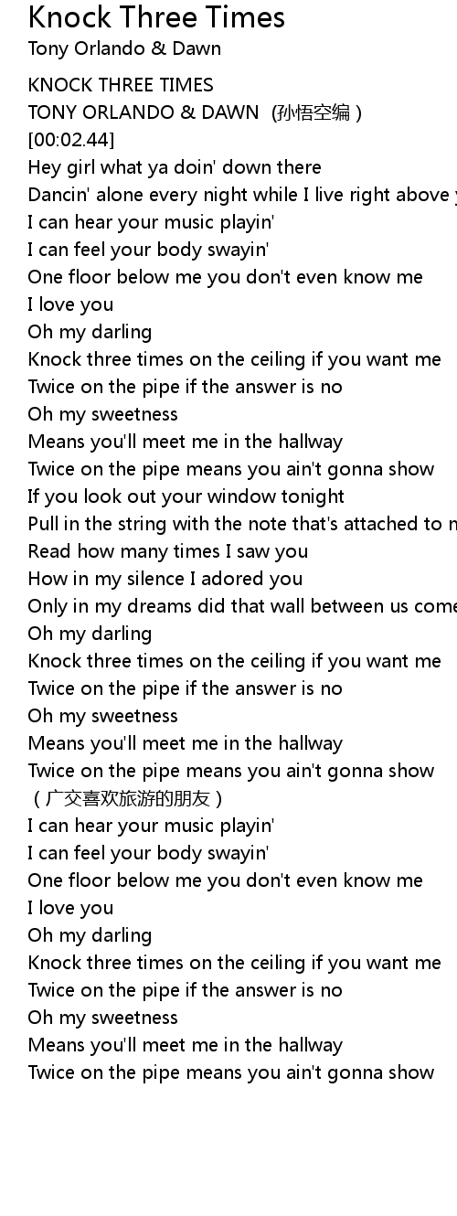 | [00:35.28] | Knock three times on the ceiling if you want me |