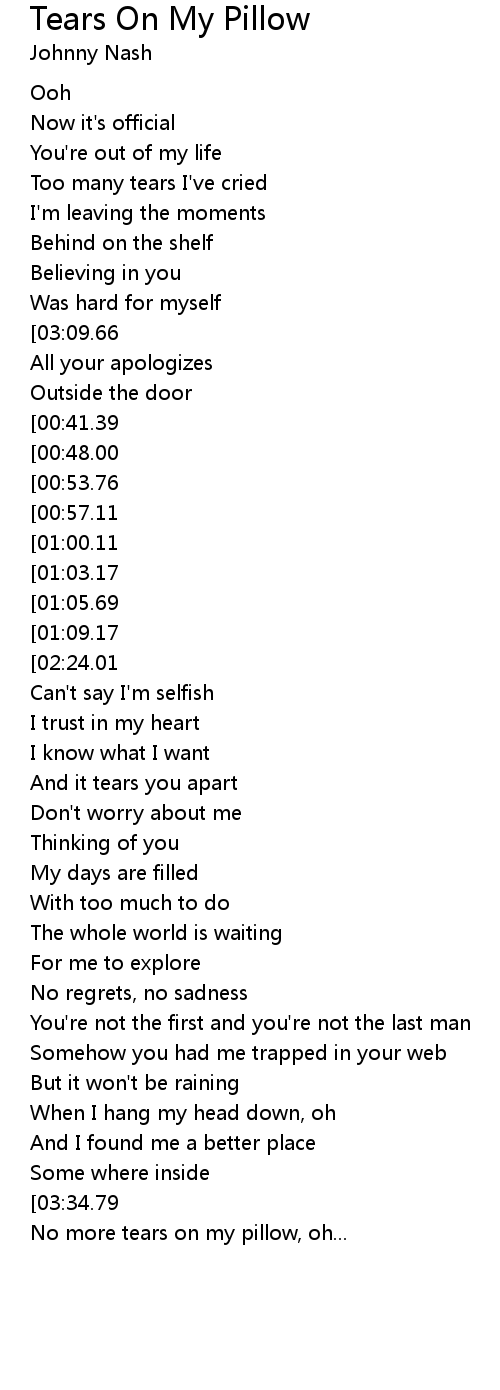 [03:40.46][03:34.79] (No more) tears on my pillow