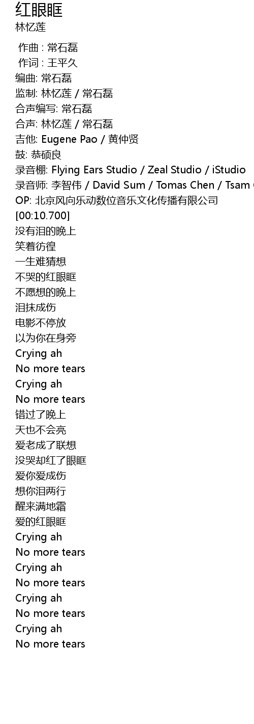 | [00:07.000] | 录音棚: Flying Ears Studio / Zeal Studio / iStudio |