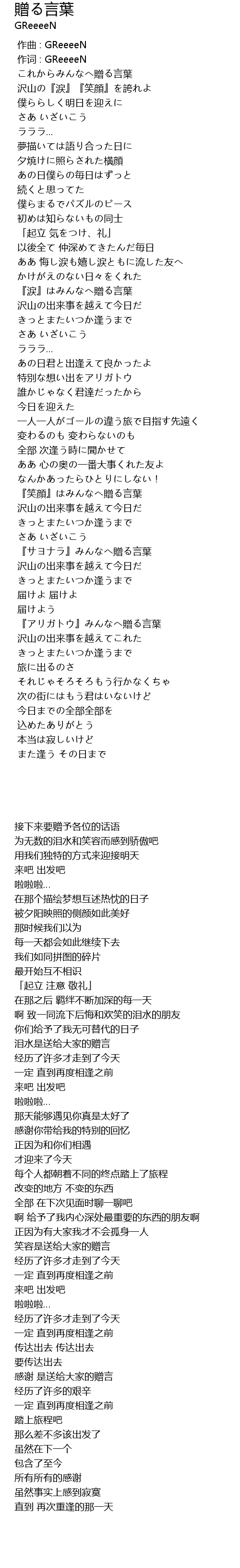 | [00:00.357] | これからみんなへ贈る言葉 |