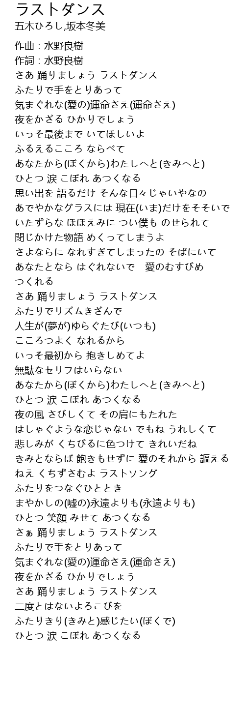 | [00:16.95] | さあ 踊りましょう ラストダンス |