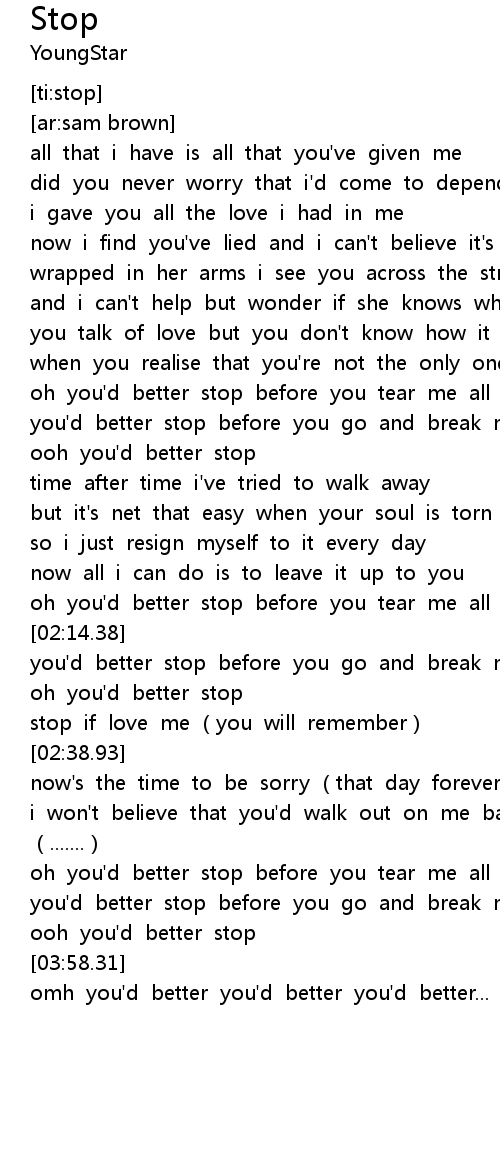| [02:23.19] | you' d better stop before you go and break my heart |