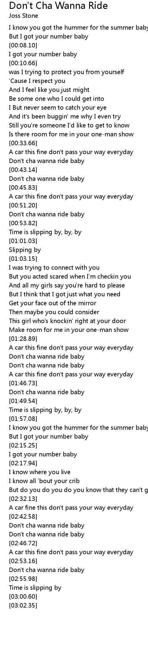 Don't cha wanna ride baby |