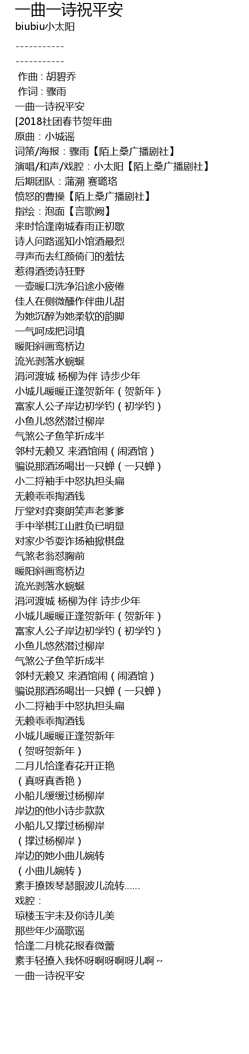 | [00:02.03] | 一曲一诗祝平安 |