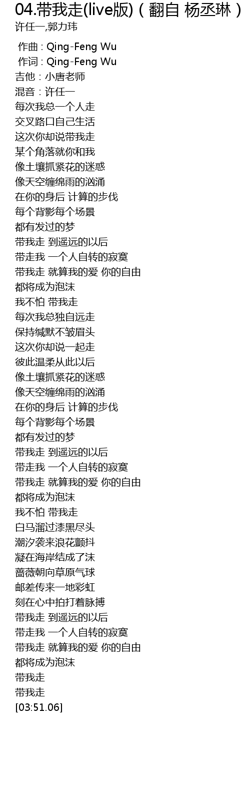 | [03:19.07] | 带我走 就算我的爱 你的自由 |