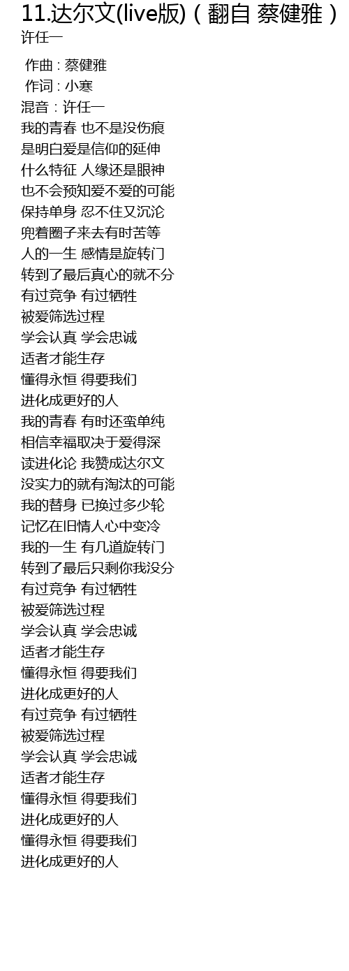 | Song | 11.达尔文(live版)(翻自 蔡健雅) |