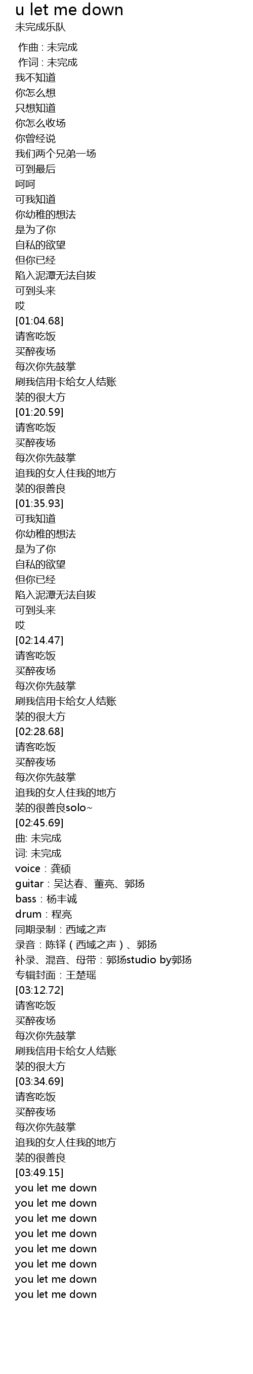 | [02:52.15] | guitar:吴达春、董亮、郭扬 |