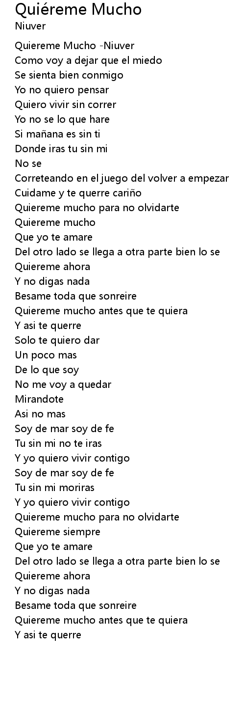 | [00:00.95] | Quiereme Mucho -Niuver |