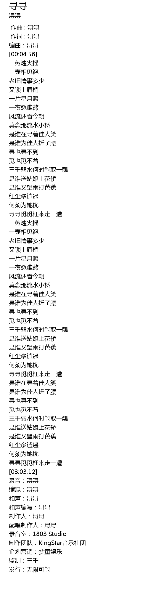 | [03:04.62] | hé shēng biān xiě: xún xún |