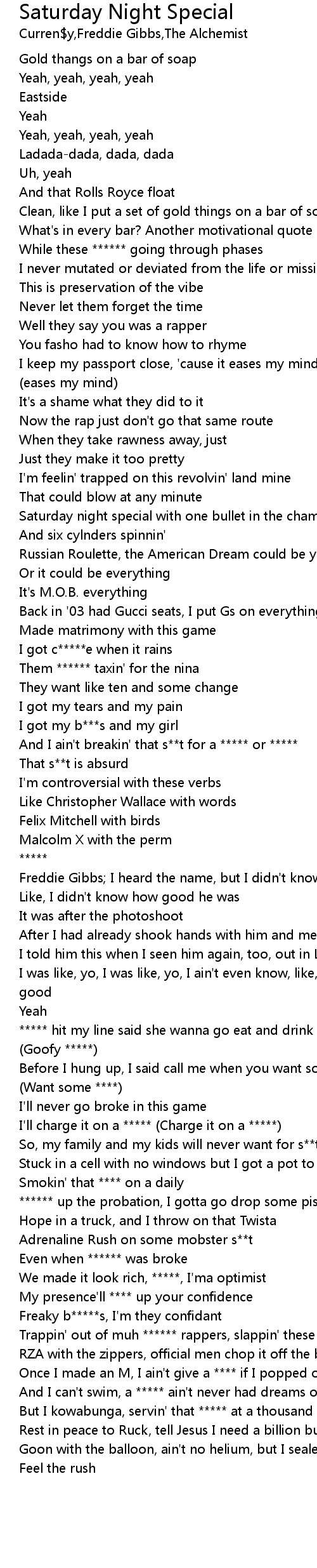 Saturday Night Special Lyrics