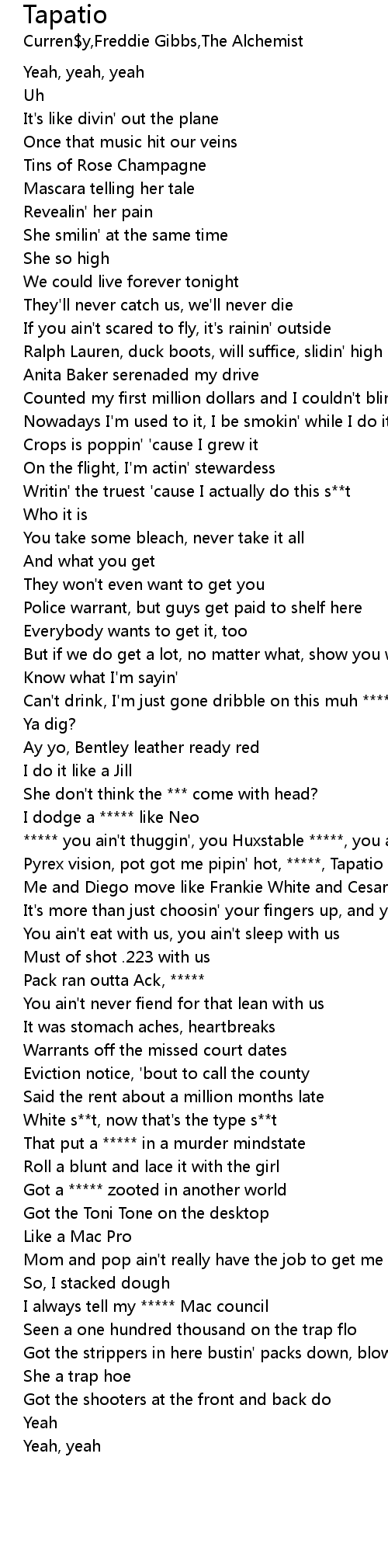 Pyrex vision, pot got me pipin' hot, *****, Tapatio |
