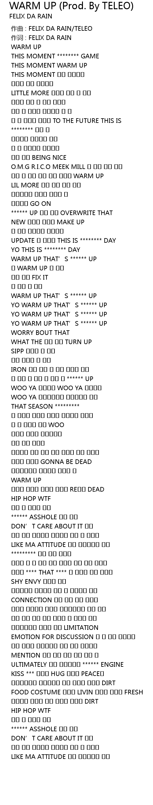 | [01:18.234] | WARM UP THAT’S ****** UP |
