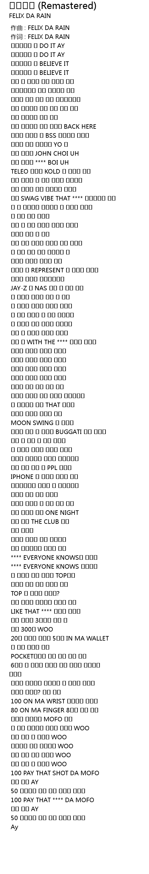 | [00:01.000] | 作词 : FELIX DA RAIN |