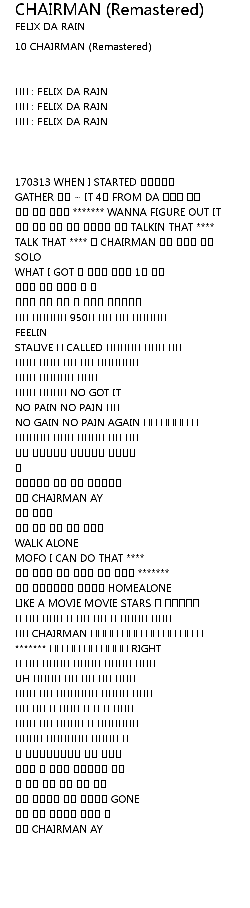 작사 : FELIX DA RAIN