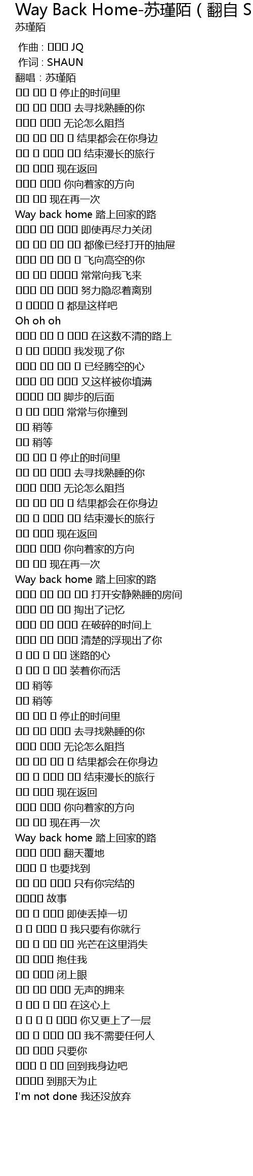 | [00:17.942] | Way back home tà shàng huí jiā de lù |