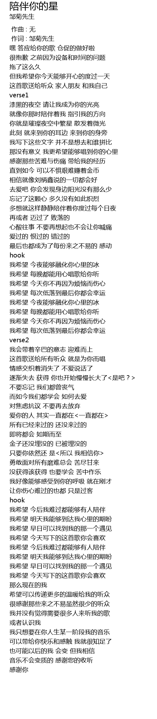 | [01:33.732] | wǒ xī wàng měi wǎn dōu néng yòng xīn chàng gē gěi nǐ tīng |