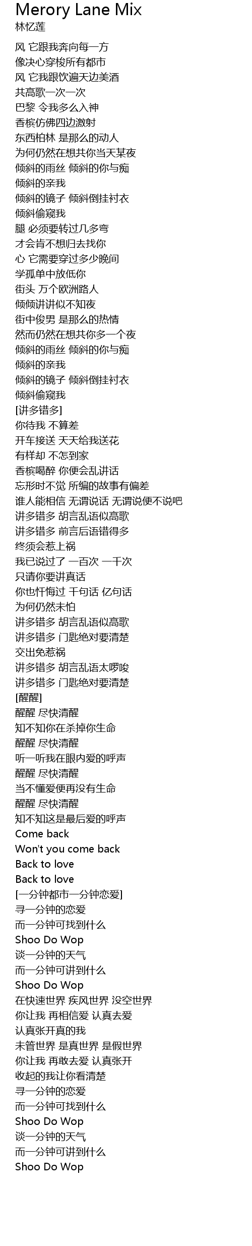 | Song | Merory Lane Mix |