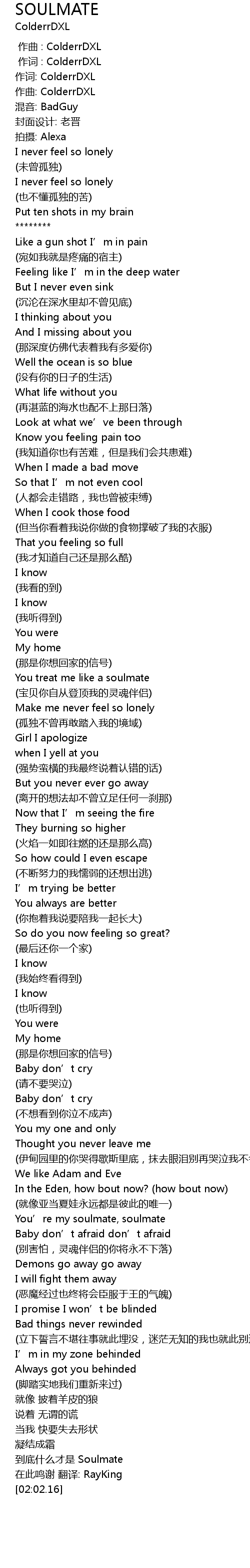 | [01:34.15] | (别害怕,灵魂伴侣的你将永不下落) |