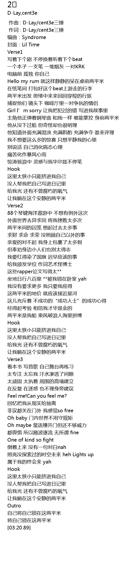 | [00:01.000] | 作词 : D-Lay/cent3e三锤 |