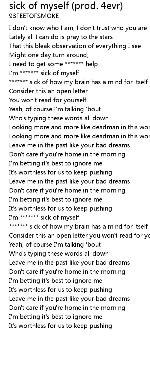 I'm ******* sick of myself |