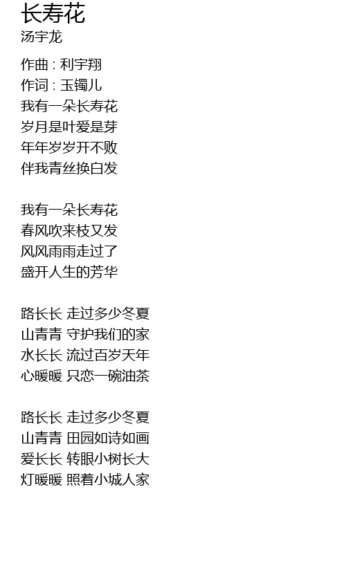 | wǒ yǒu yī duǒ cháng shòu huā | |