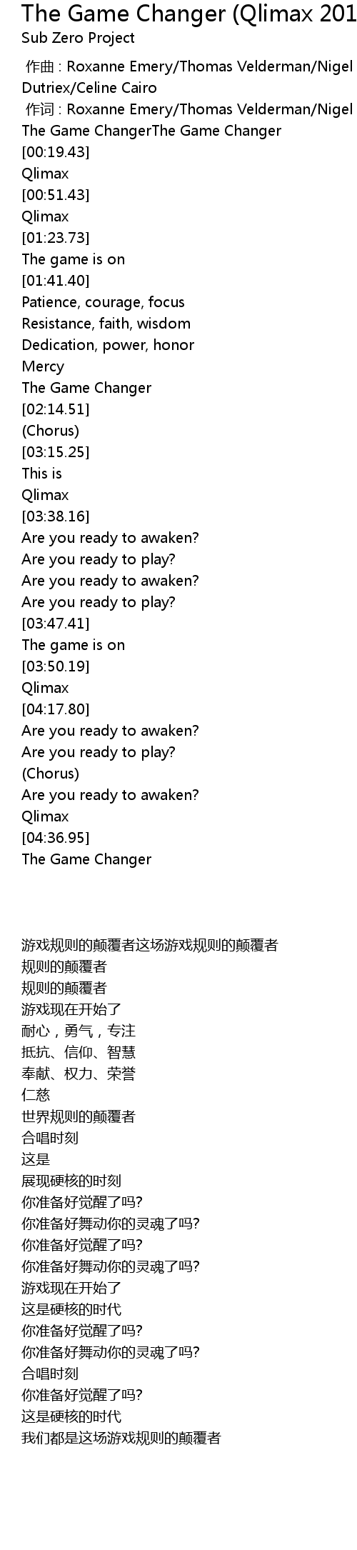 | [00:11.33] | The Game ChangerThe Game Changer |