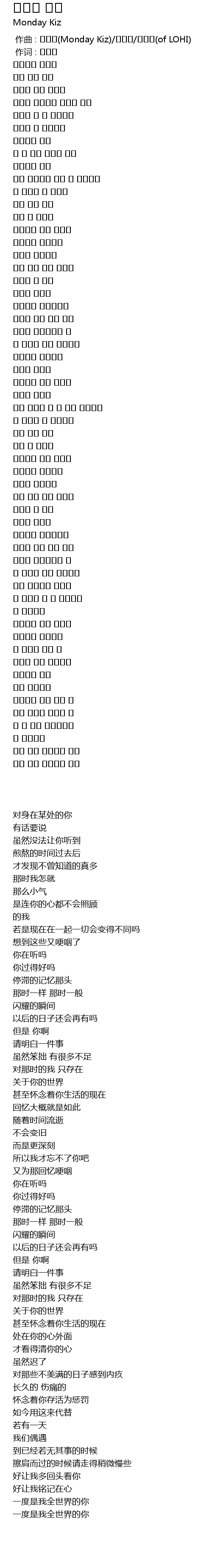| [00:00.000] | zuo qu : Monday Kiz of LOHI |