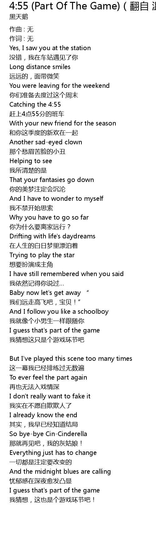 | Song | 4:55 (Part Of The Game)(翻自 温拿) |