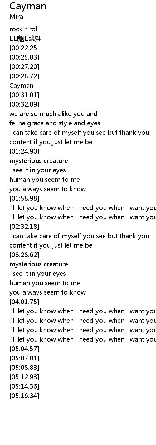 | [00:29.86] | Cayman |