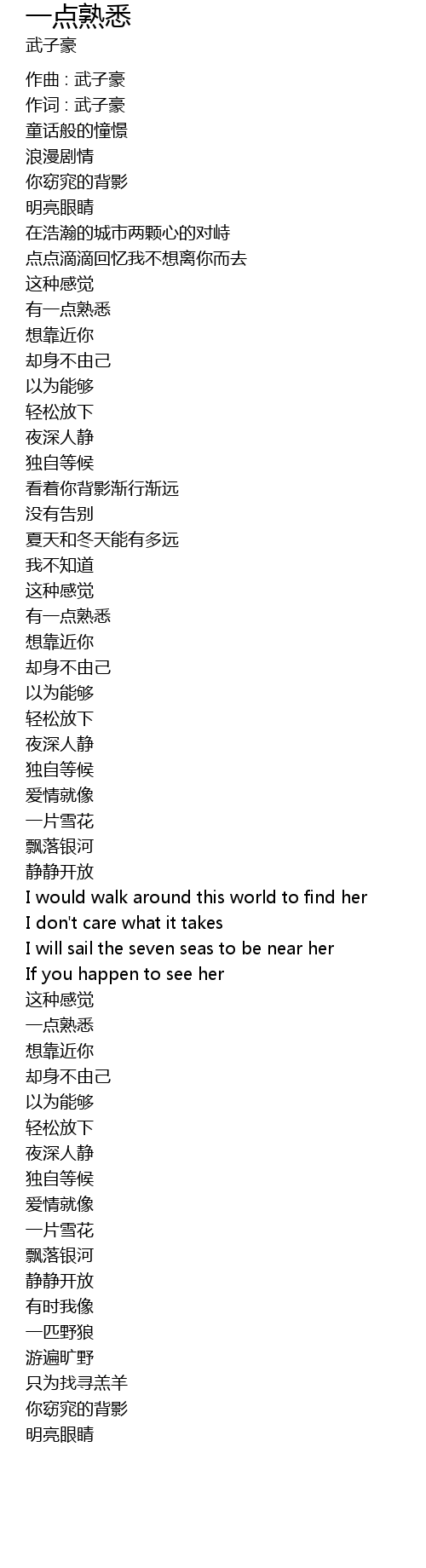 | Song | 一点熟悉 |