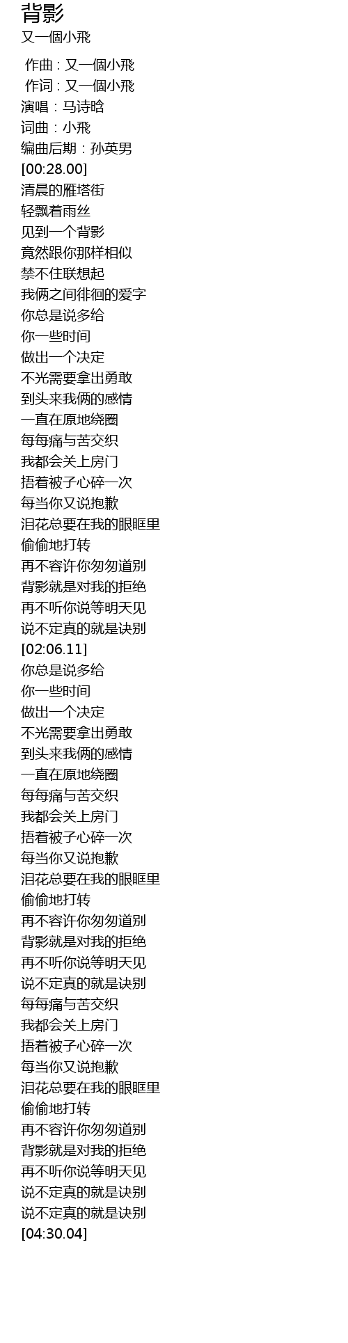 | [00:16.00] | cí qǔ: xiǎo fēi |