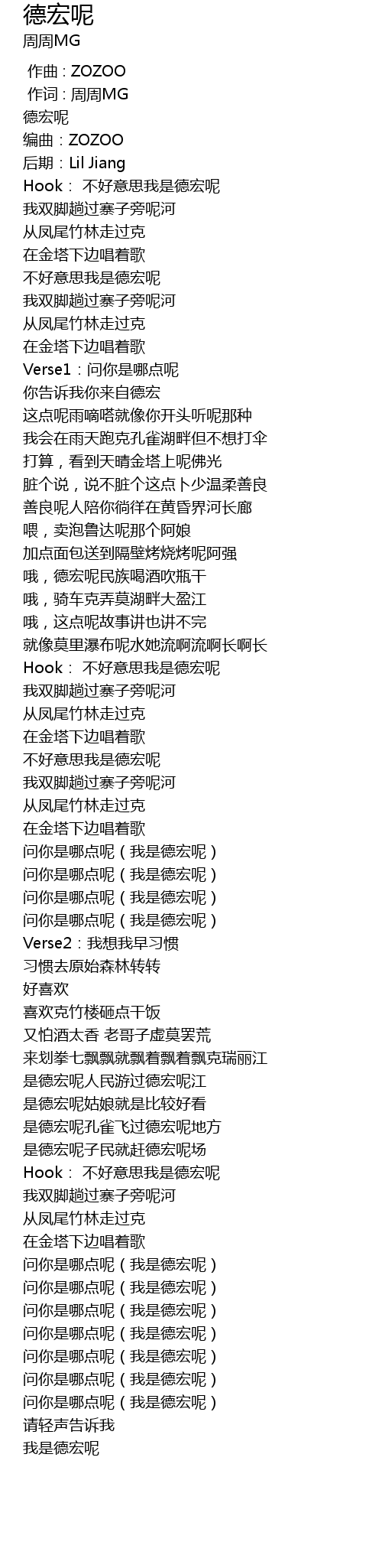 | [01:26.652] | Hook: 不好意思我是德宏呢 |