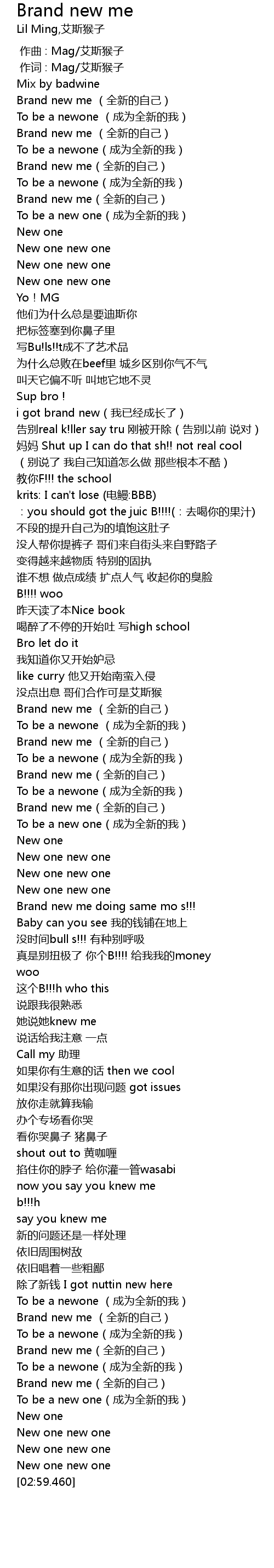 | [02:41.740] | Brand new me quan xin de zi ji |