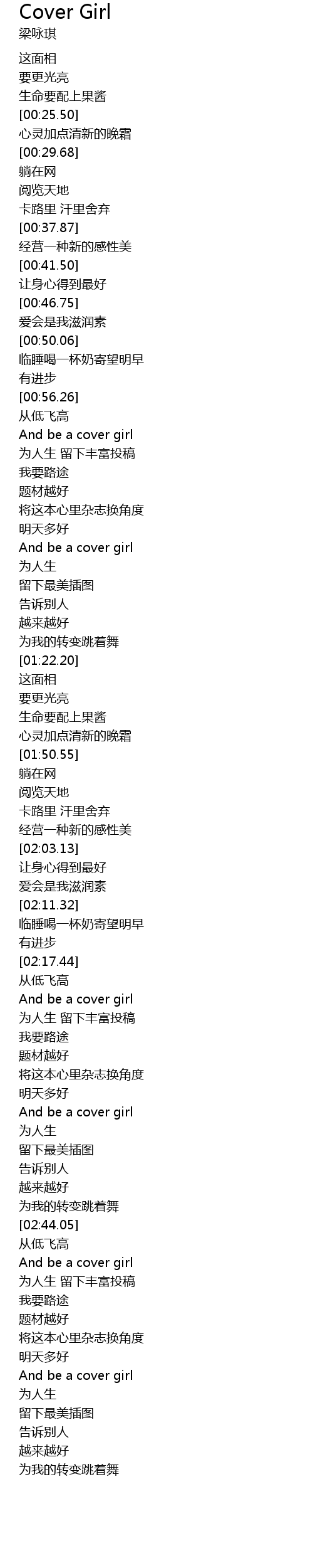 | [02:21.37] | And be a cover girl |