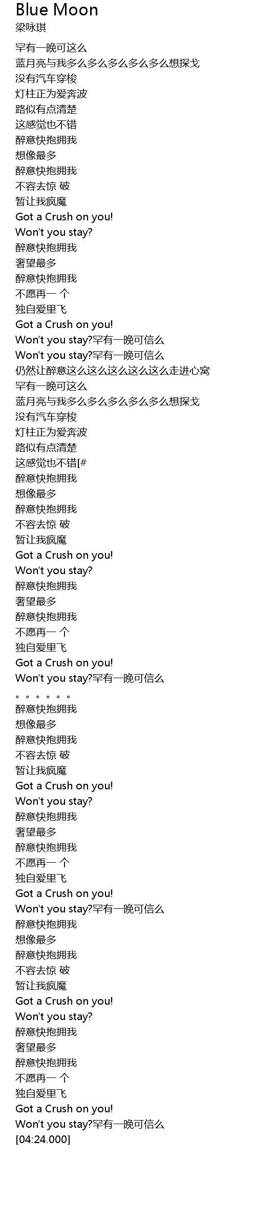 | [04:14.000] | Won' t you stay? han you yi wan ke xin me |