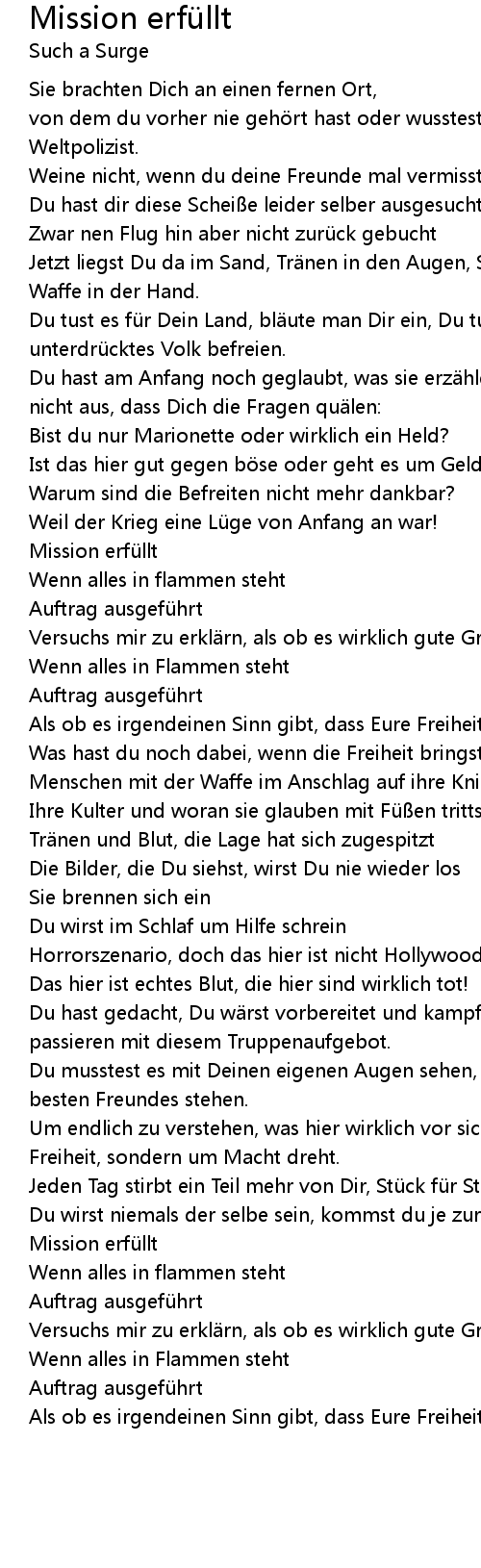 | Song | Mission erfüllt |