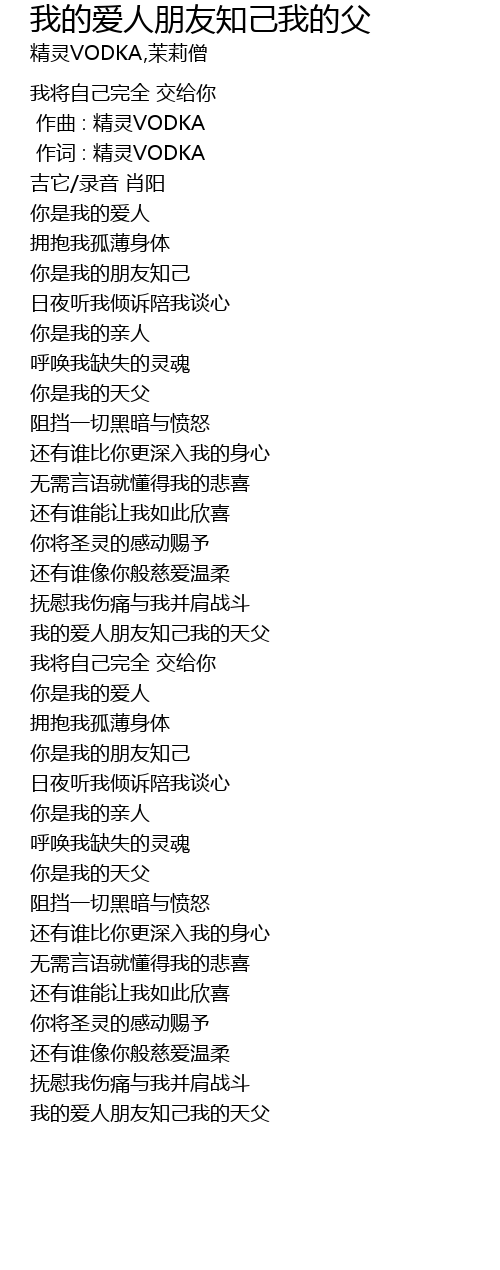| [01:30.160] | 我的爱人朋友知己我的天父 |