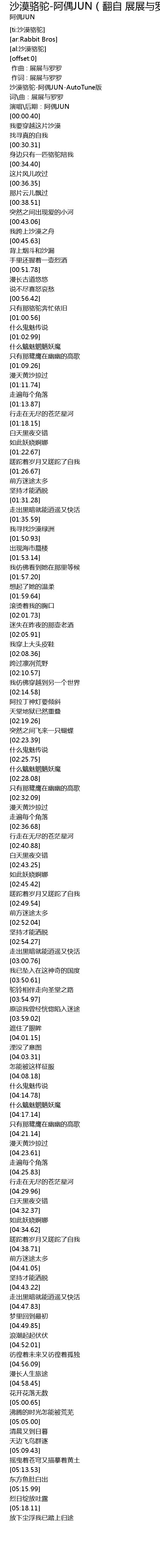 | [00:00.100] | 沙漠骆驼-阿偶JUN-AutoTune版 |
