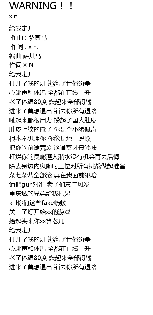 | [01:51.938] | 老子体温80度 燥起来全部得输 |